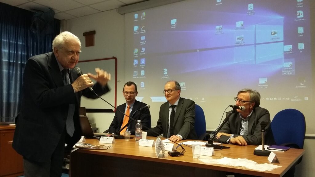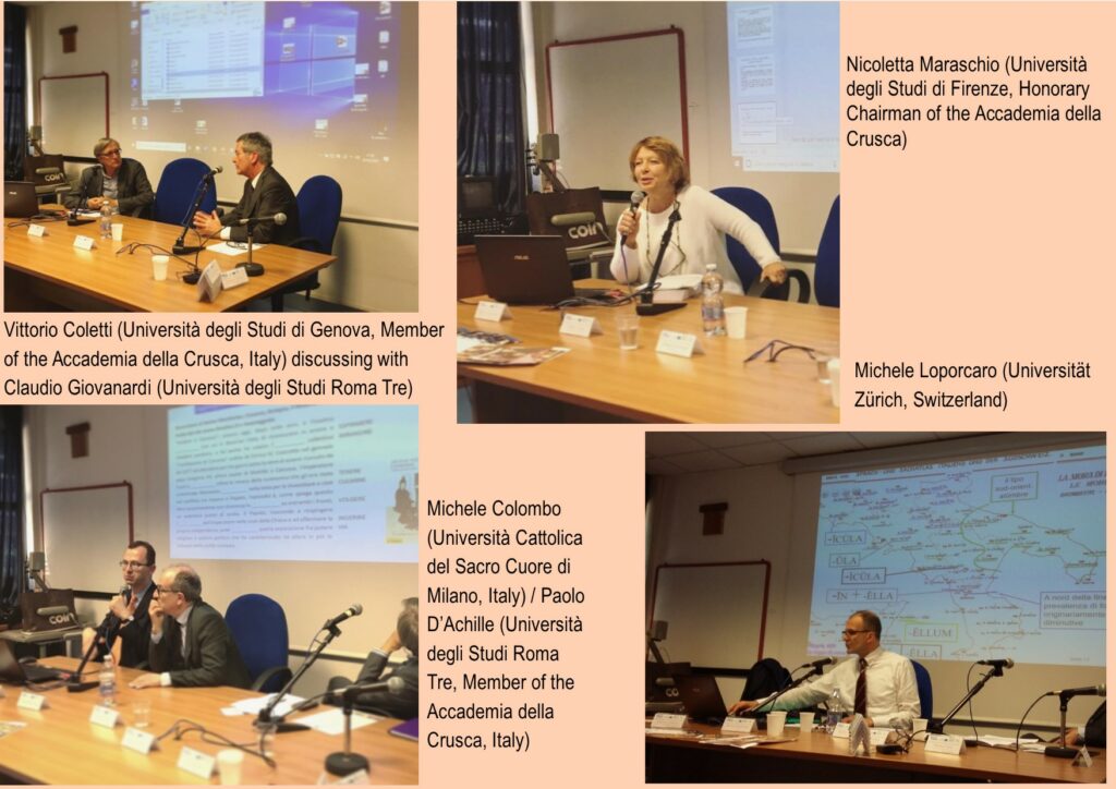 Francesco Sabatini (Roma Tre – Emeritus, Honorary Chairman of the Accadmia della Crusca) with Michele Colombo (Milano), Paolo D’Achille (Roma Tre, Member of the Accademia della Crusca) and Vittorio Coletti (Genova, Member of the Accedemia della Crusca)