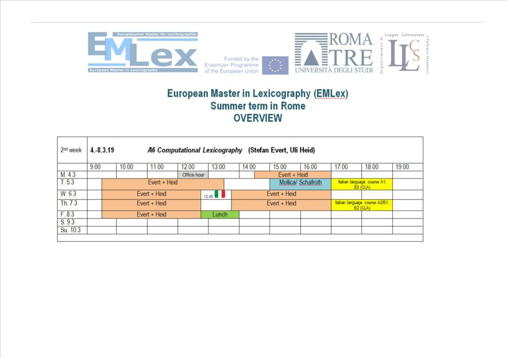 Overview of the summer term (to download) (NEW 08/05/2019):