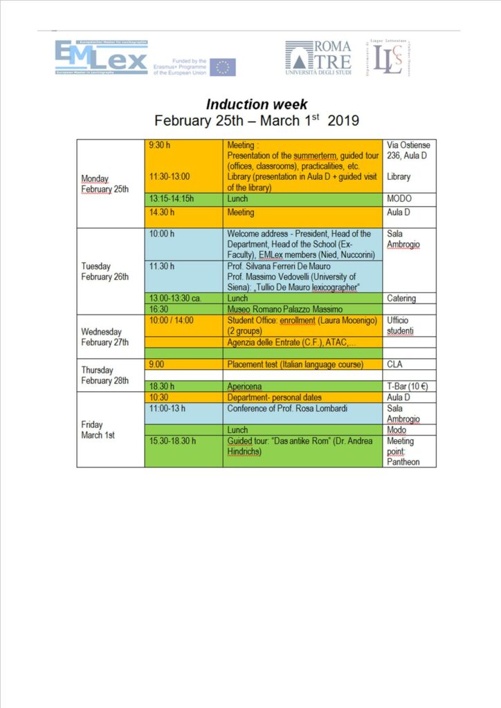 Programme of the Induction week to download/ Programm der Einführungswoche zum herunterladen/ Programma della settimana di orientamento da scaricare: